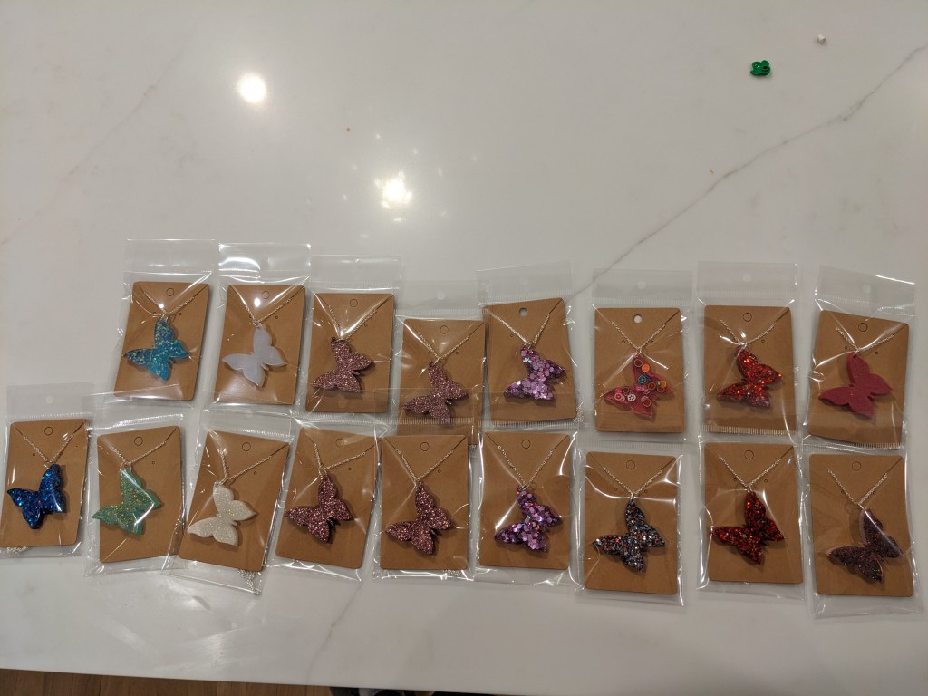 Here are some of the types of items she has spent her summer creating! Everything is hand mixed, poured and finished by Sienna, featuring her signature glitter mixes of all colors!